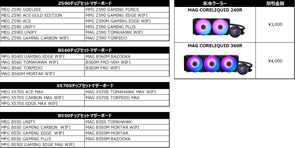 MSI製対象マザーと簡易液冷クーラーのセット購入で最大4000円引きに