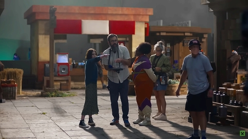 公開された動画では,ナタリー役を演じるエマ・マイヤーズさんが,マインクラフト世界を再現したセットでの撮影風景を紹介している。エマさんは「初めてセットに入った時,自分がマインクラフトの世界にいるのだと実感し,圧倒された」と語っており,実物大のブロック状の木や,かわいらしい四角いじゃがいもなどが特に印象に残ったそうだ。
