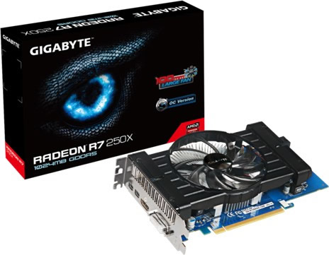 100mm径ファン採用のクーラーを搭載するGIGABYTE製R7 250Xカード