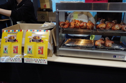 フードやグッズの販売も行われており,友人同士や家族連れと見られる多数の来場者が食事を楽しんでいた。