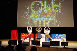 村山董絃さんが登場。出演者に迎えられた2人は緊張をにじませながら意気込みを語り,「城とドラゴン テーマソング」をかわいらしい振り付けと共に披露した。