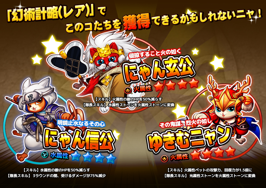 「コンボキャット」,期間限定ステージ「幻術計略」で名将ペットを手に入れよう
