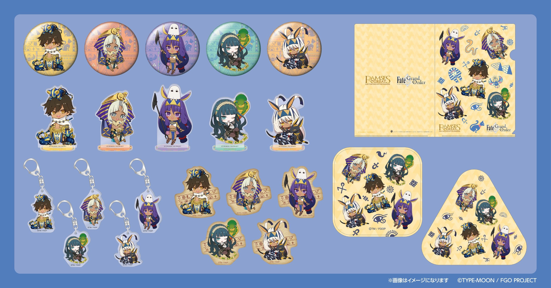 「Fate/Grand Order」と「ラムセス大王展 ファラオたちの黄金」がコラボ。描き下ろしミニキャライラストを使用したグッズが登場