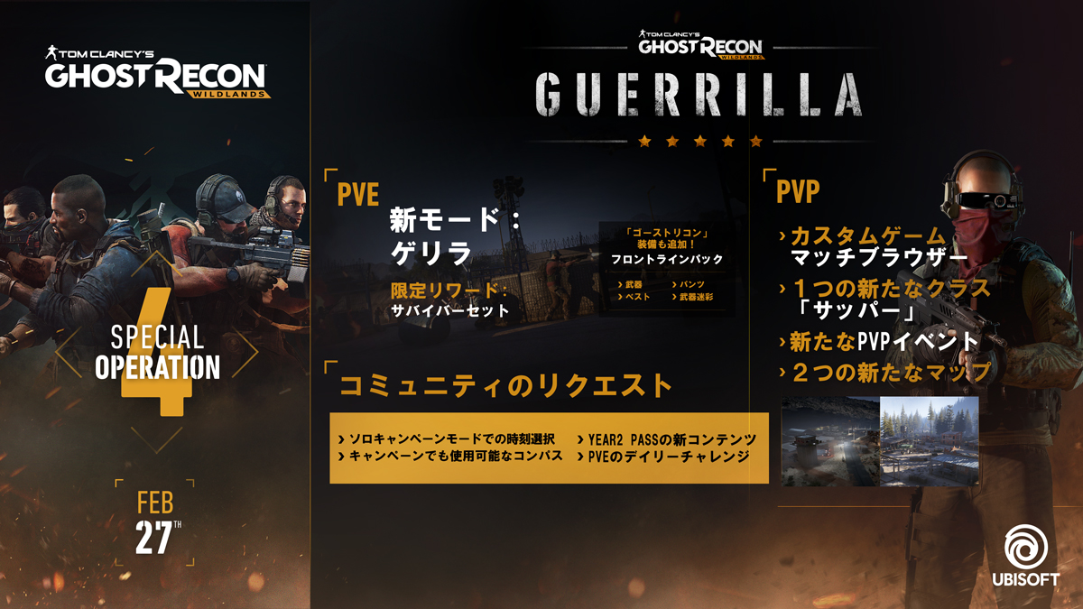 「ゴーストリコン ワイルドランズ」,新PvEモードや新PvPクラスの追加を行う大型アップデート「Special Operation 4」を本日配信