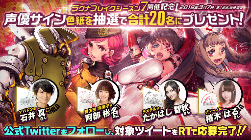ラグナブレイク シーズン7開催記念!声優サイン色紙プレゼントキャンペーン開催!!
