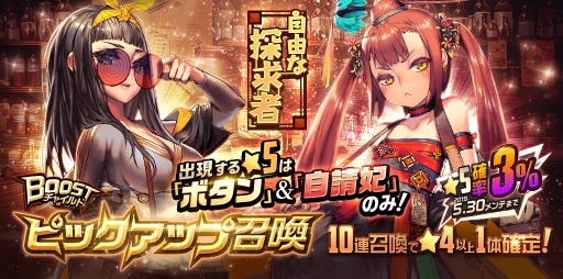 NARRATIVE ダンジョンの BOOST チャイルドとなる★5「ボタン」(CV.小見川千明)、★5「自請妃」(CV.立花理香)をピックアップした「自由な探求者」BOOST チャイルドピックアップ召喚を開催!