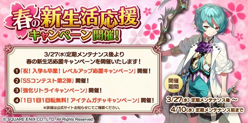 アソビモ株式会社(本社:東京都豊島区 代表取締役:近藤克紀)と、株式会社スクウェア・エニックス(本社:東京都新宿区 代表取締役社長:松田洋祐)が共同開発したアクショ ン RPG『ファンタジーアース ジェネシス(Fantasy Earth Genesis)』にて、3月27日(水)より、「新生活応援キャンペーン」を開催中です。アプリはGoogle Play・App Storeにて無料でダウンロードできます。