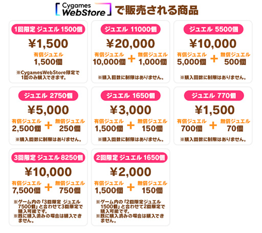 「Cygames WebStore」にてゲーム内商品を販売開始。ジュエルなどのゲーム内アイテムをお得に購入できる
