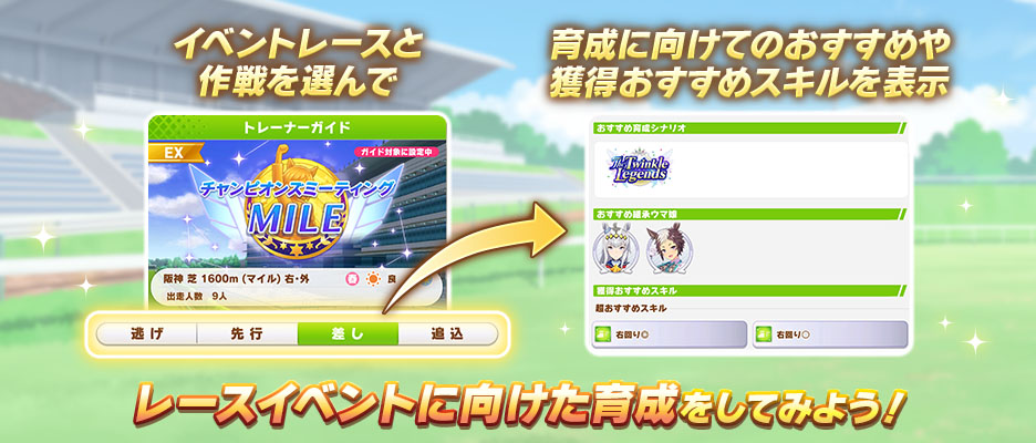 「ウマ娘 プリティーダービー」,レースイベントでおすすめのスキルなどをガイドしてくれる初心者向け新機能「トレーナーガイド」を実装