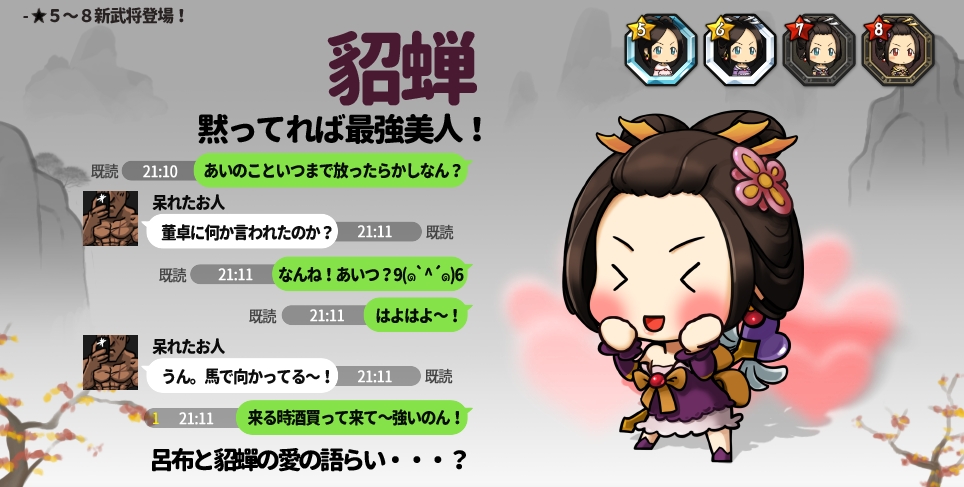 「三国志ディフェンちゅ」,本日実施の大型アップデートで「貂蝉」が登場