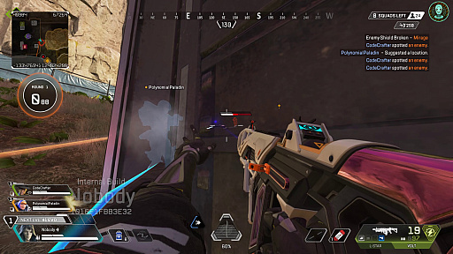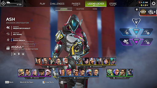 1.パッシブが「Predator’s Pursuit」に変更。マップ上にデスボックスを表示する能力は維持しつつ,デスボックスのサーチ能力を削除。代わりに短距離ダッシュ(ブリンク)を獲得。リチャージは約5秒で,ジャンプボタン2連打で発動。約20mほどの水平距離を移動できる。移動は水平方向に限られ,空中に向かっての移動は不可能