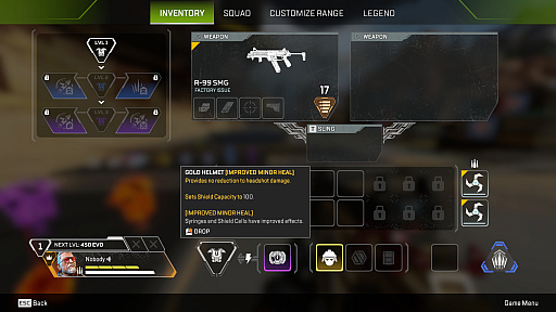3.スリング仕様変更。スリングに携行される武器は,レジェンドアップグレードに比例してレベルアップされるように