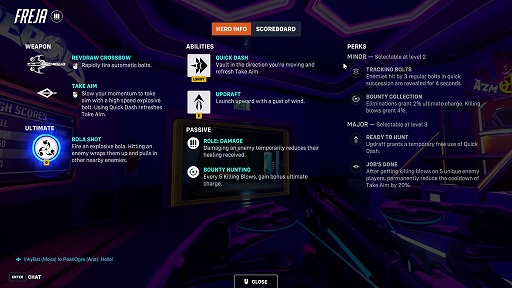 フレイヤは,高い機動力をもつ遠距離攻撃型のヒーローで,主に2つの攻撃を使い分けます。