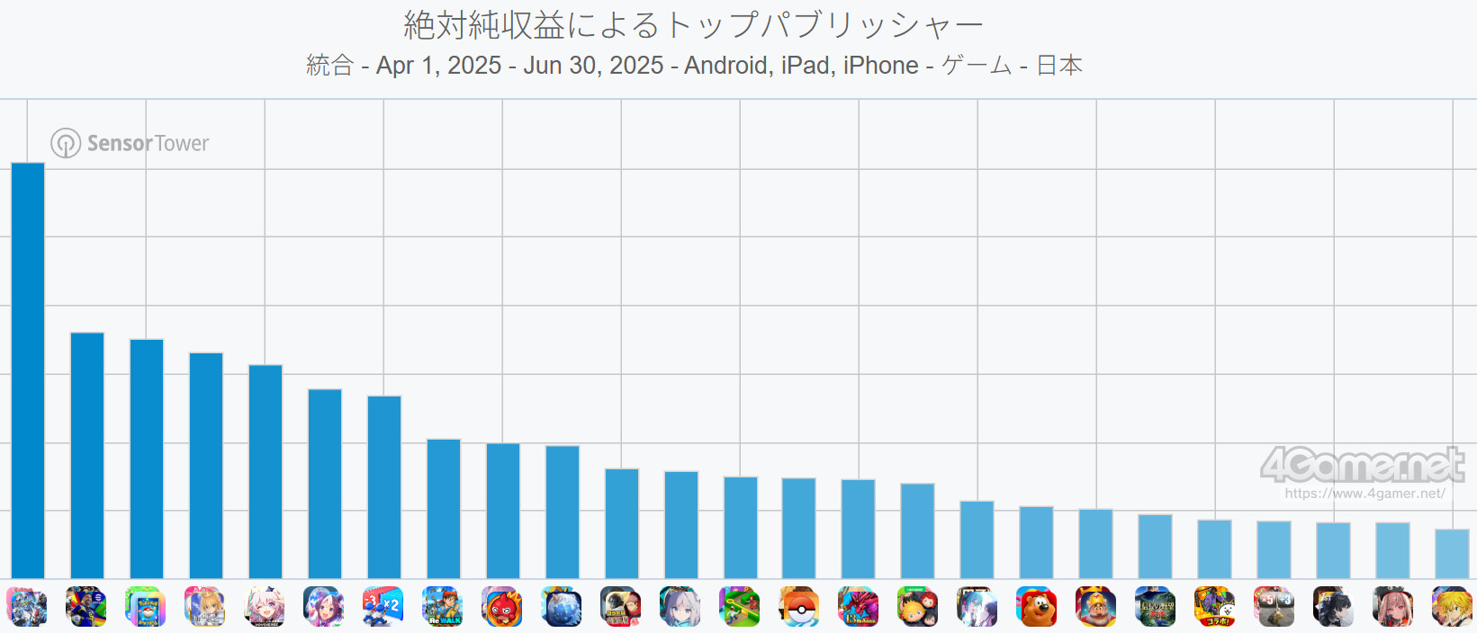 スマホゲームのセルラン分析(2025年7月10日〜7月16日)。今週も1位は「崩壊:スターレイル」。4月〜6月のパブリッシャ別国内収益ランキングも