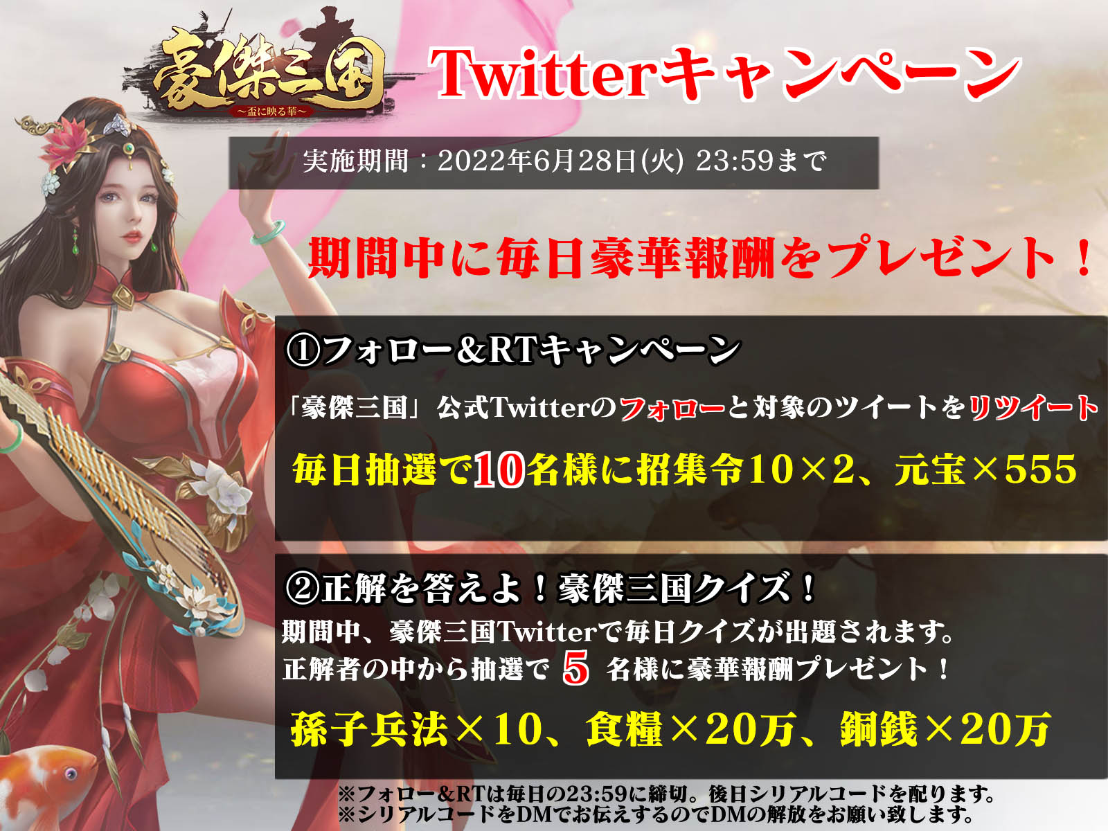 「豪傑三国〜盃に映る華〜」,Yahoo!モバゲーとMobageでのサービス開始を記念したTwitterキャンペーン開催