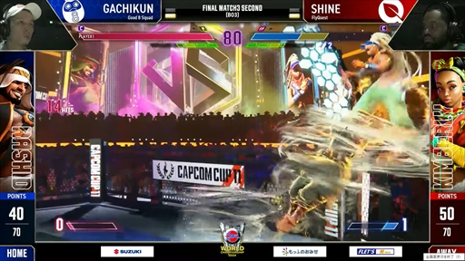 結果,この日初めて試合に出場したガチくん選手がSHINE選手を2-0で下すも,カワノ選手とぷげら選手は敗北し,FlyQuestが先行する結果となった。