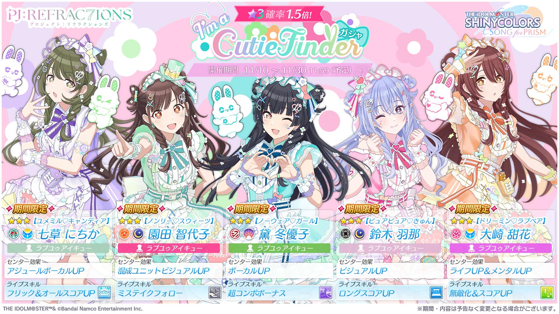 「シャニソン」黛 冬優子,園田智代子,鈴木羽那,七草にちか,大崎甜花による新ユニット「I'm a Cutie Finder」が誕生。新曲も公開中
