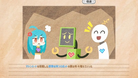 本ゲームは記録を無くしたロボット少女が主人公の育成シミュレーションゲームです。外出・仕事・大会など行動を選択し、個性豊かな人間・ロボットとの出会いを楽しめます。