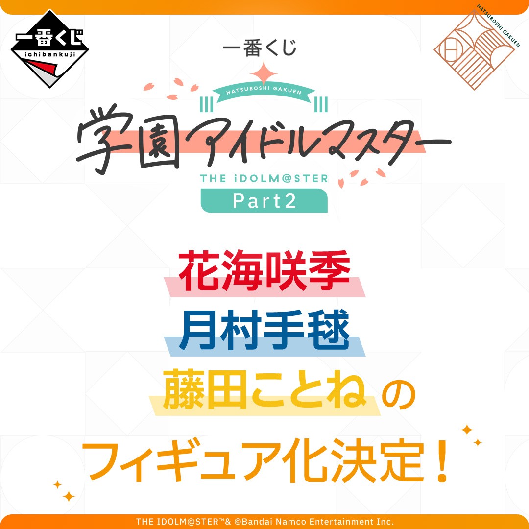 「一番くじ 学園アイドルマスター Part2」,6月20日より順次発売予定。花海咲季,月村手毬,藤田ことねの3人がフィギュアで登場