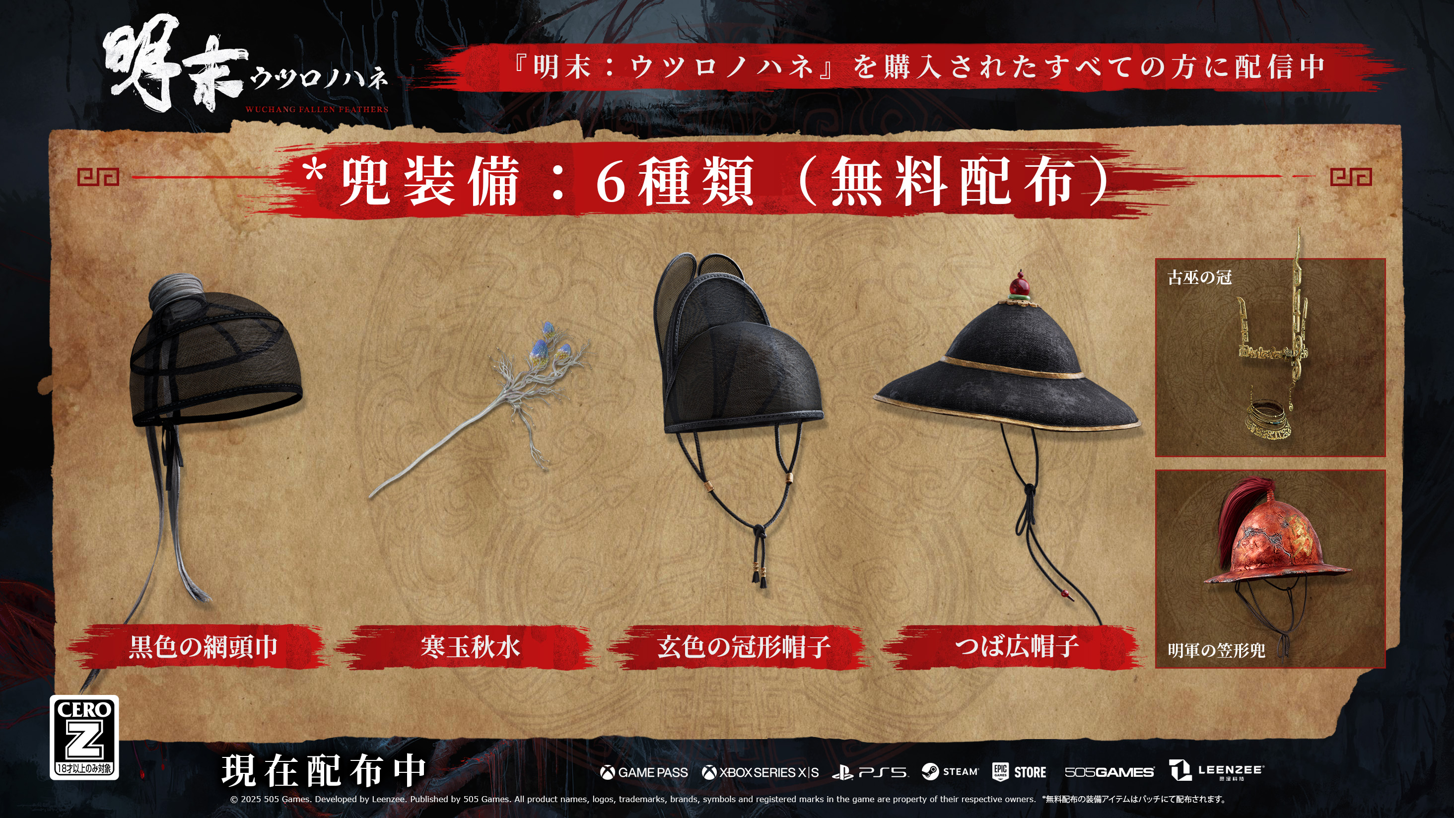 「明末:ウツロノハネ」,衣装(3種)と武器(2種)が手に入る「デラックス拡張パック2」と「兜装備4種」の無料配布を開始