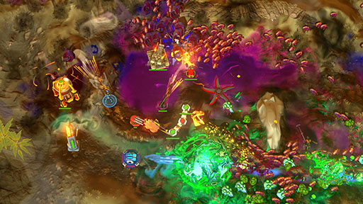 見どころは,リアルタイムストラテジーとタワーディフェンスのメカニクスの融合を図った点。プレイヤーは敵対する惑星から資源を獲得すべく,強力な戦車や鋭い刃が回転するファン,強固なバリアなどをリアルタイムで操作し,大群になって襲いかかる敵たちとバトルを繰り広げていく。
