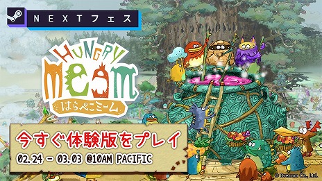 『はらぺこミーム』は、2月24日(月)からPCゲーム配信プラットフォームSteam(R)にて開催されるゲームイベント、「Steam Next フェス 2025 2月エディション」への参加を予定しています。様々なゲームの体験版が一度に遊べる機会となっておりますので、是非ご注目ください。