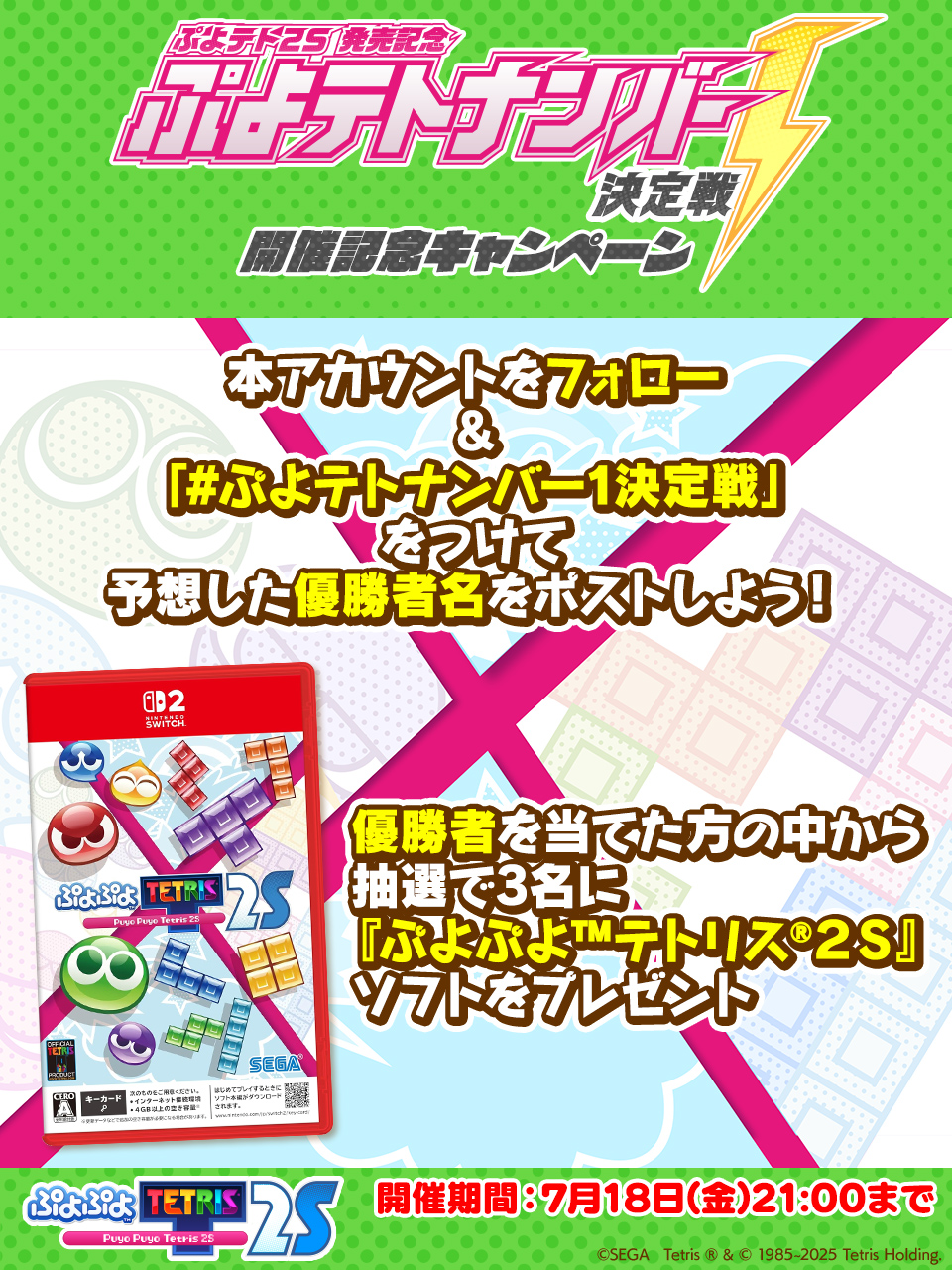 特別番組「ぷよテト2S発売記念 ぷよテトナンバー1決定戦」,7月18日に配信