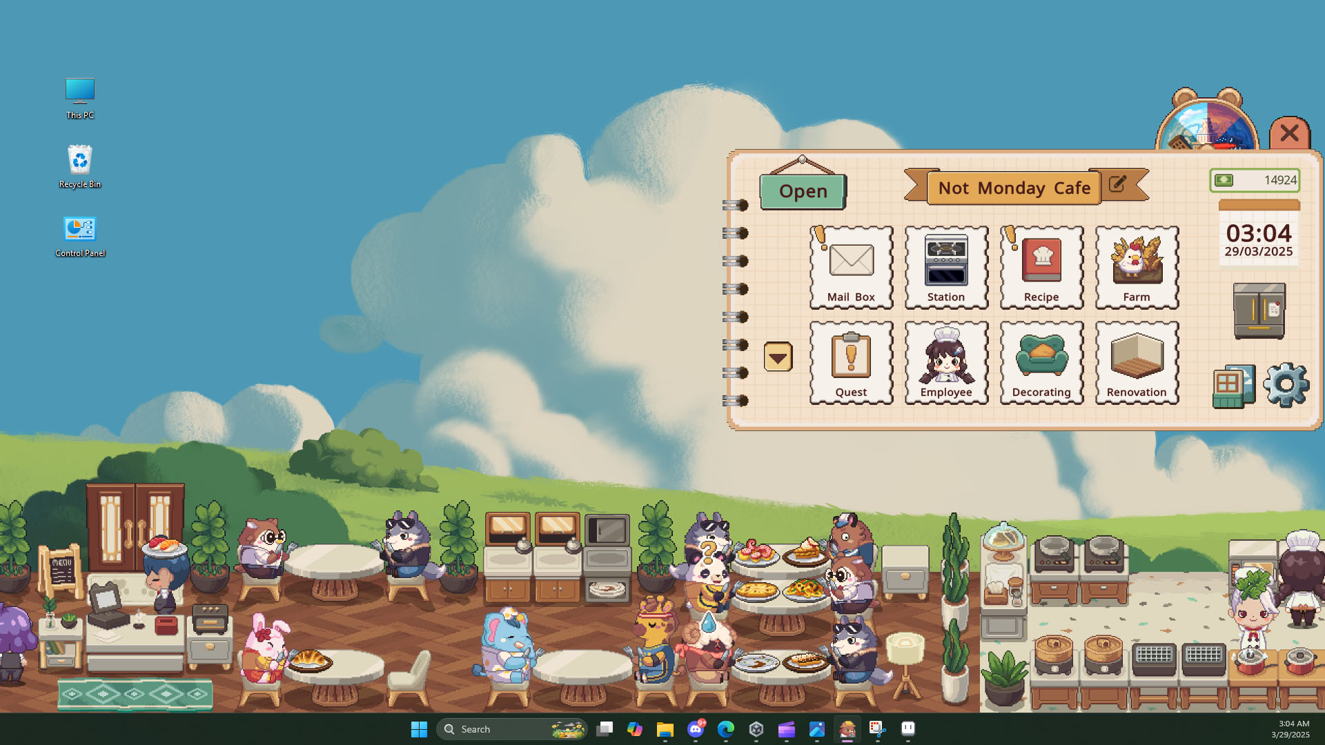 デスクトップの一部でお店の経営を楽しめる「月曜が来ないカフェ(Not Monday Cafe)」,日本語版のストアページをSteam内に開設