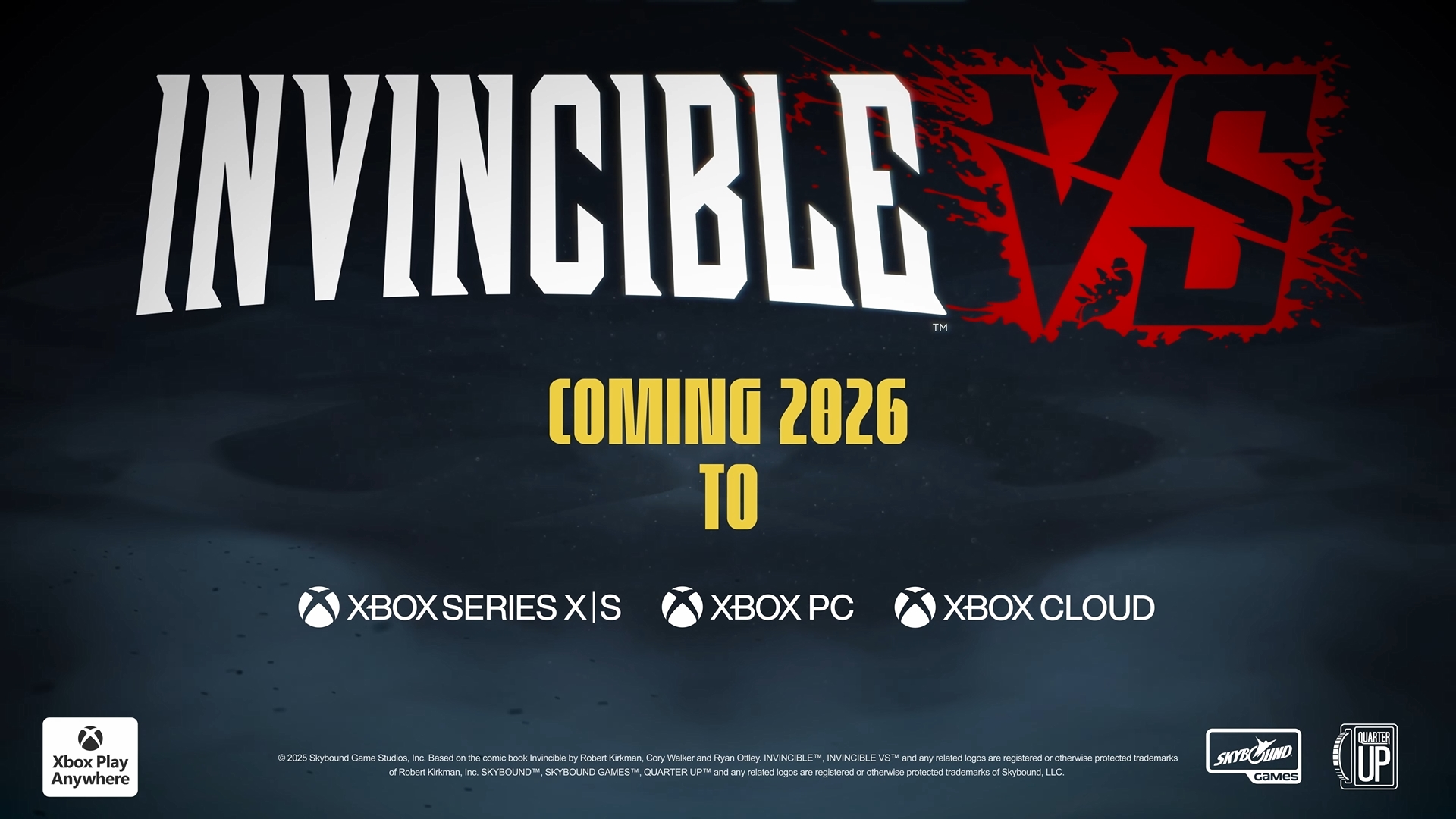 (C) 2025 Skybound Game Studios, Inc. INVINCIBLE and INVINCIBLE VS and any related logos are registered or otherwise protected trademarks of Robert Kirkman, Inc. QUARTER UP™ and any related logos are registered or otherwise protected trademarks of Skybound, LLC.
