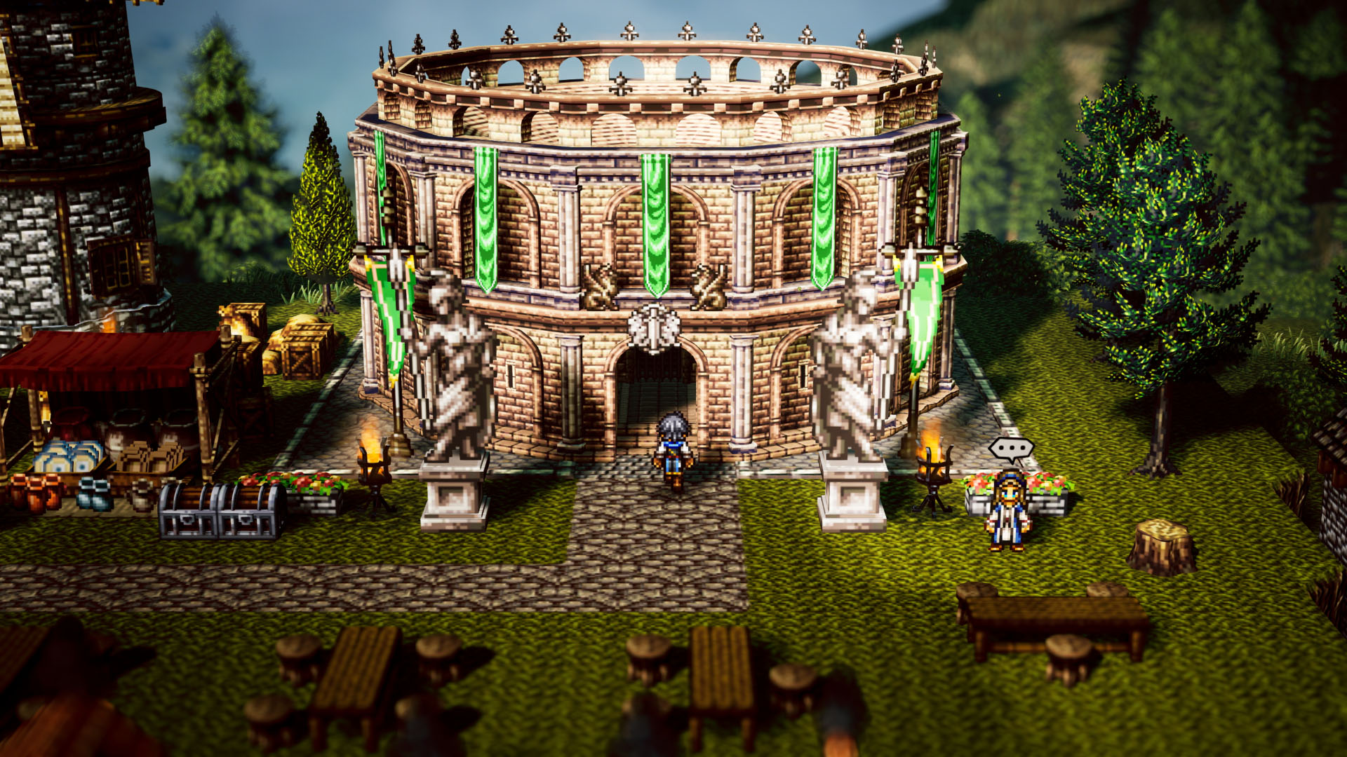 「オクトパストラベラー0」,暴虐の王の野望に共に立ち向かう仲間たちと,タウンビルドで建てられる「魔物闘技場」などの施設を紹介