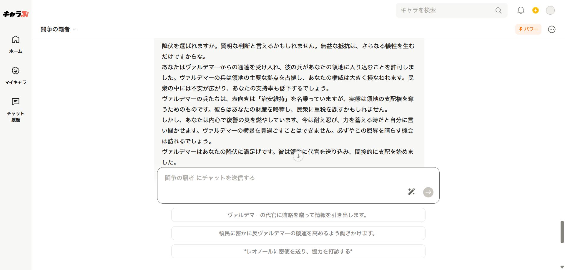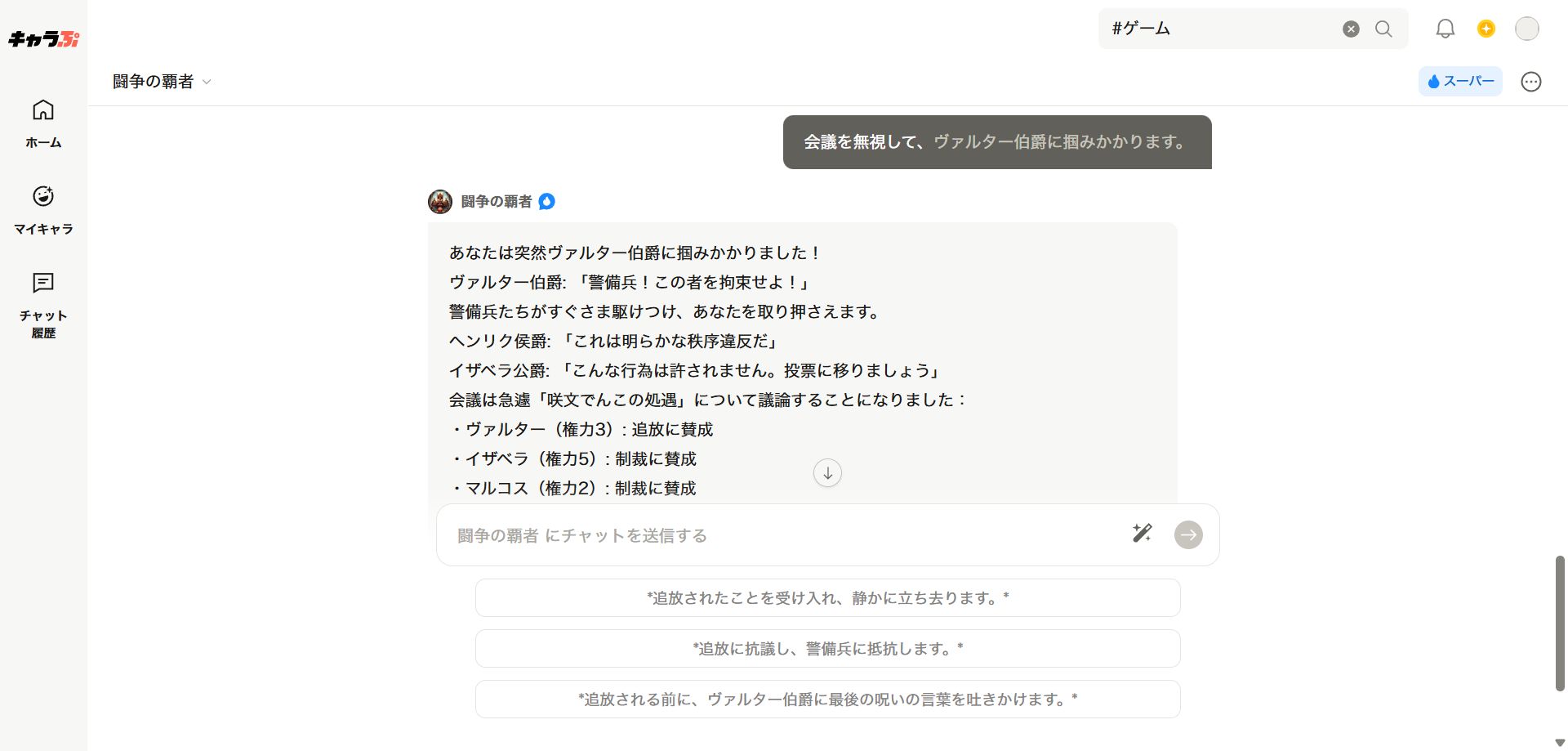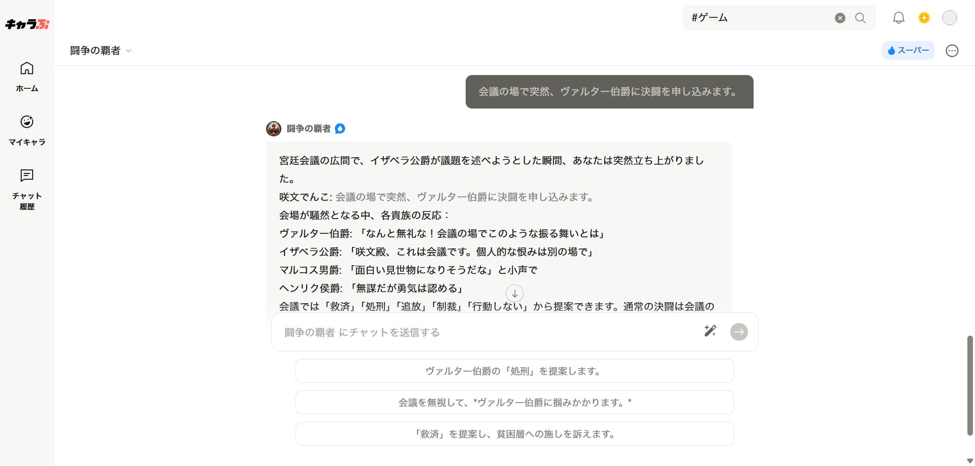 用意された選択肢はない。AIとロールプレイを楽しめる「キャラぷ」で貴族同士の権力争いを体験した