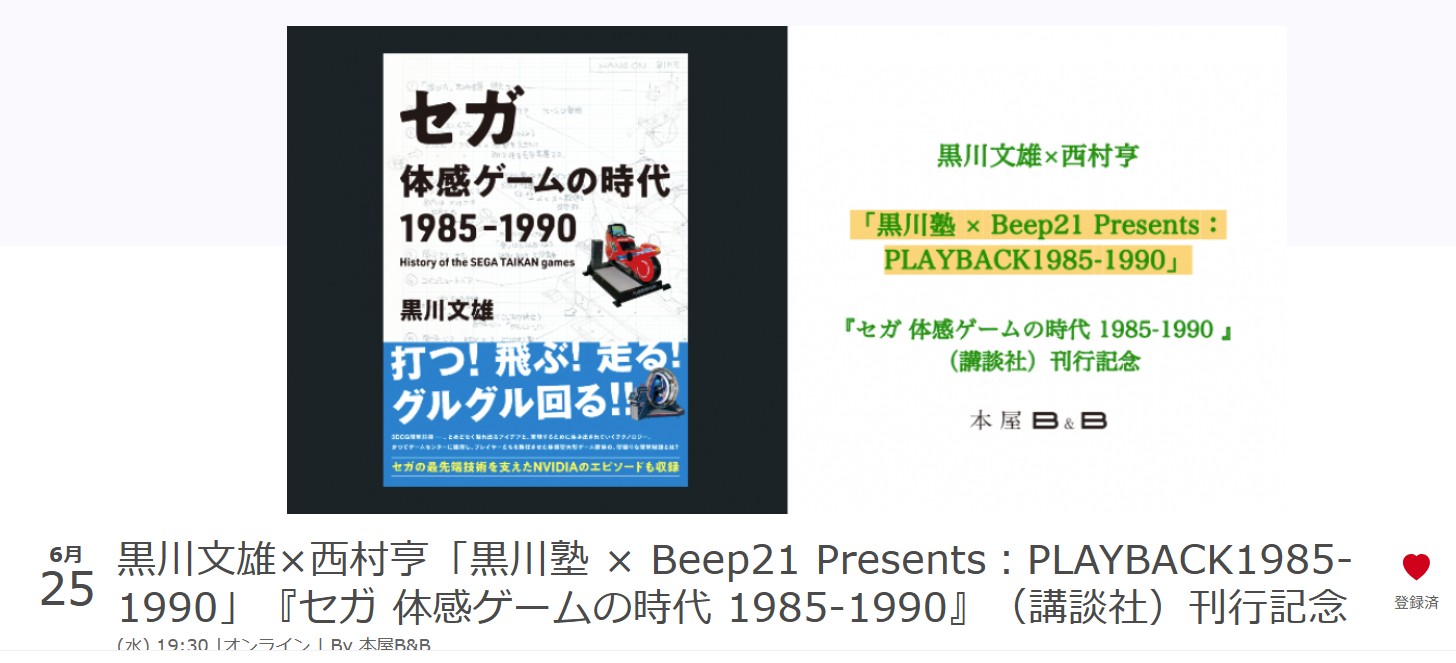 黒川文雄氏の書籍「セガ 体感ゲームの時代 1985-1990」,刊行記念イベントを6月25日に開催。ゲストはセガハード専門誌に携わった西村 亨氏