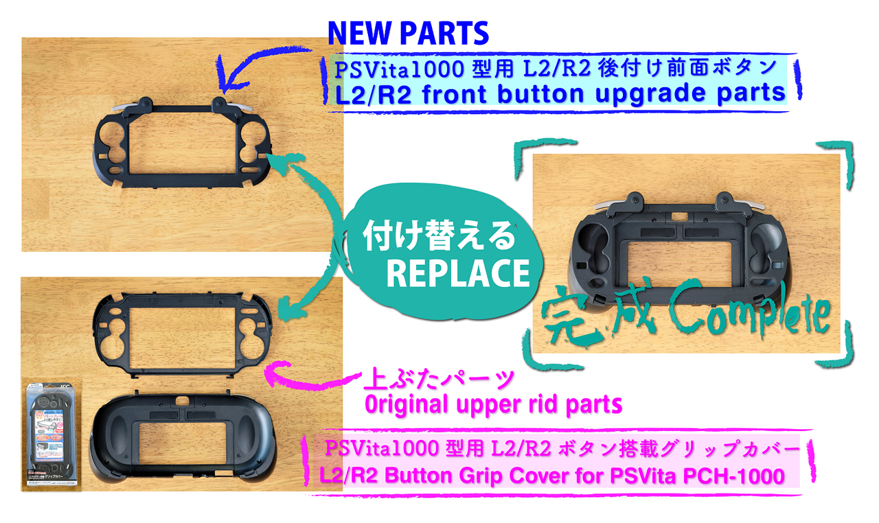 上越電子工業のPCH-1000用「L2/R2ボタン搭載 グリップカバー」をタッチスクリーン入力に対応させる「後付け前面ボタン」,開発支援企画が開始