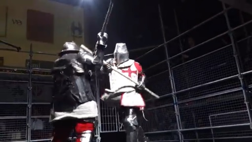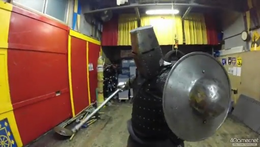 キャッスル・ティンタジェルではいきなりフルプレートを装備するのではなく,まずはアンアーマーもしくはライトアーマーで動きを学ぶそうだが,今回は「せっかく来たんだし」ということで,いきなりフルプレートでスパーを行うことになった。