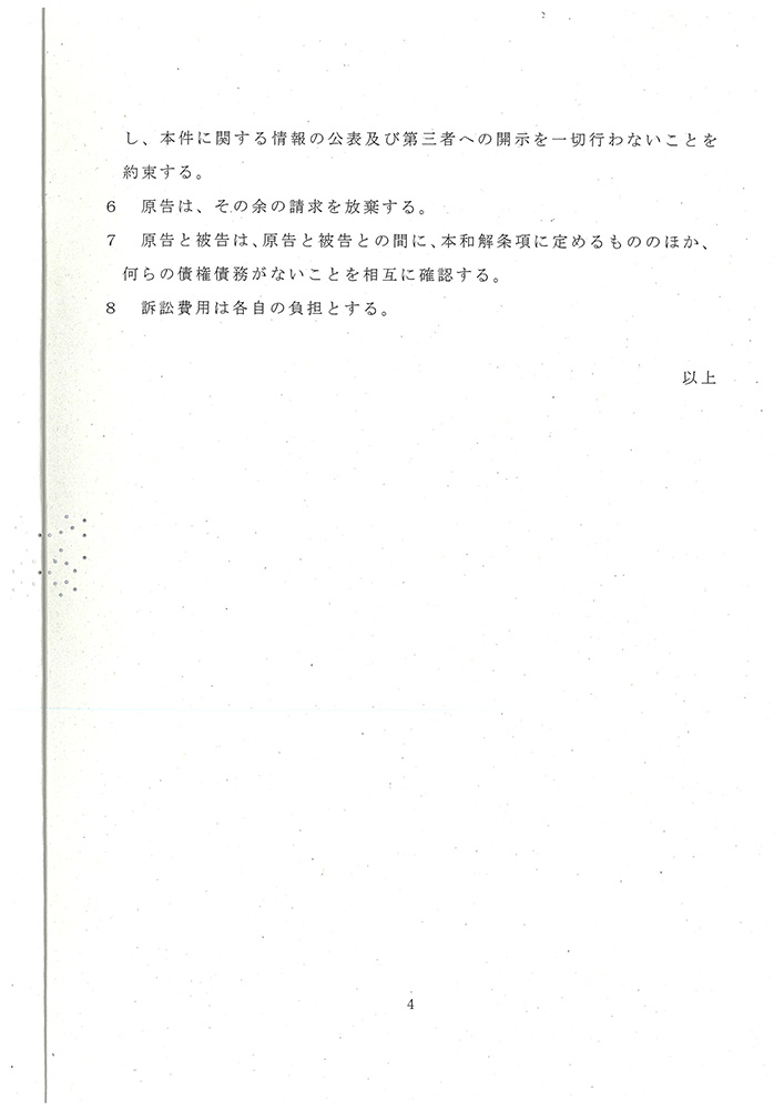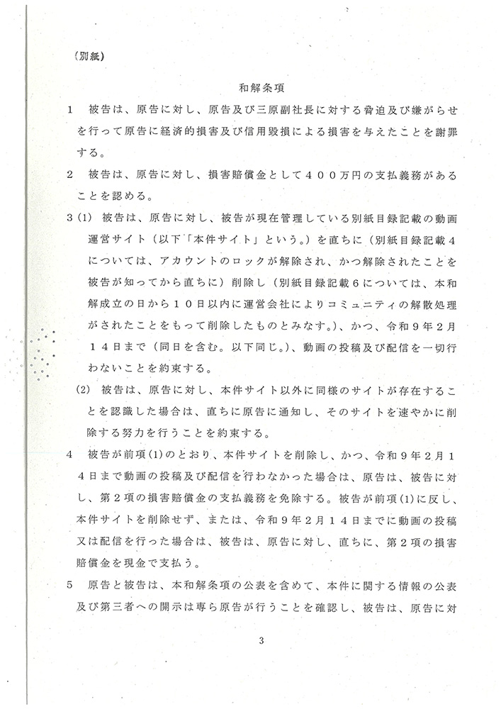 アリカ,脅迫事件の民事損害賠償請求に関して当事者間の和解が成立したことを発表