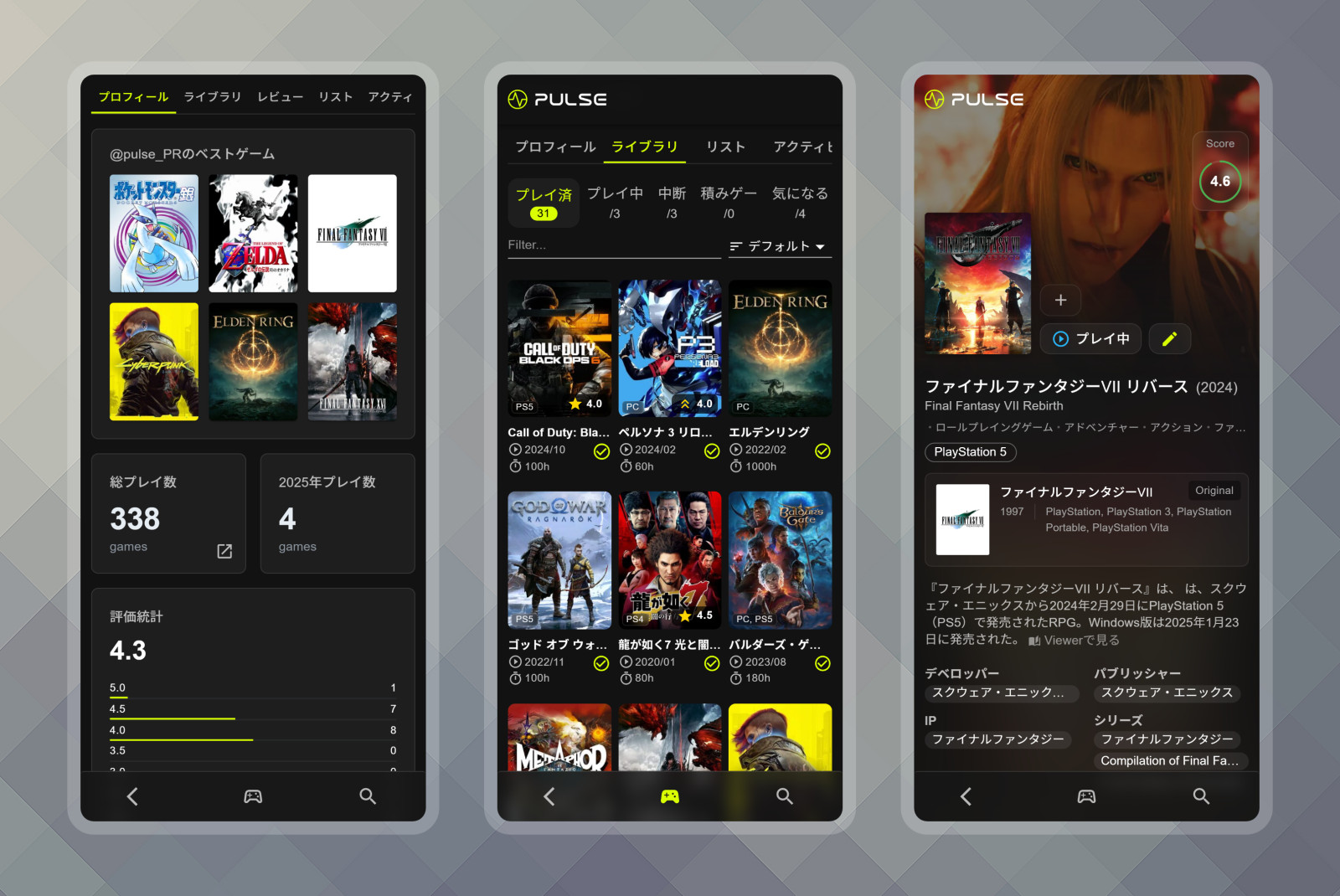 ゲーム記録・管理サービス「PULSE」,2025年2月6日に正式リリース。ランキングをつけたり,評価したりして自分だけのライブラリを制作&共有